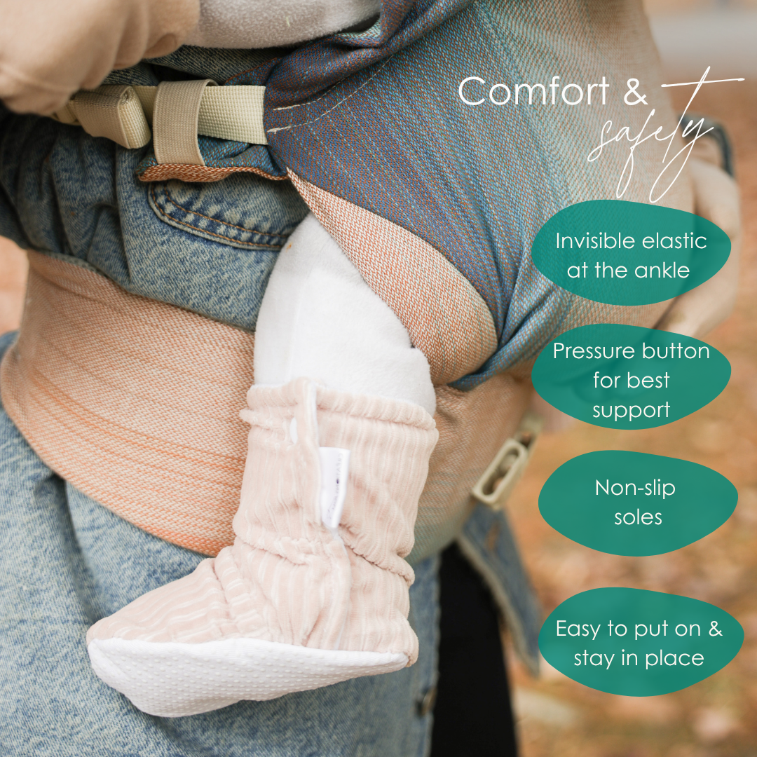 Soft, cozy, and irresistibly cute, Créations Joli baby slippers keep little feet warm and snug — and they actually stay on!