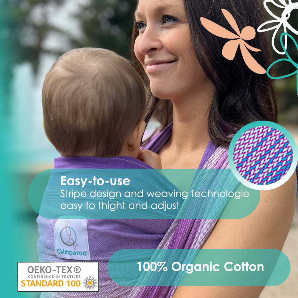 The Chimparoo woven wrap offers a unique babywearing experience with its soft and ergonomic fabric, designed for optimal comfort and support from birth. Suitable for all seasons, it allows a variety of wraps to securely carry your baby in different positions while providing full freedom of movement for the parent.