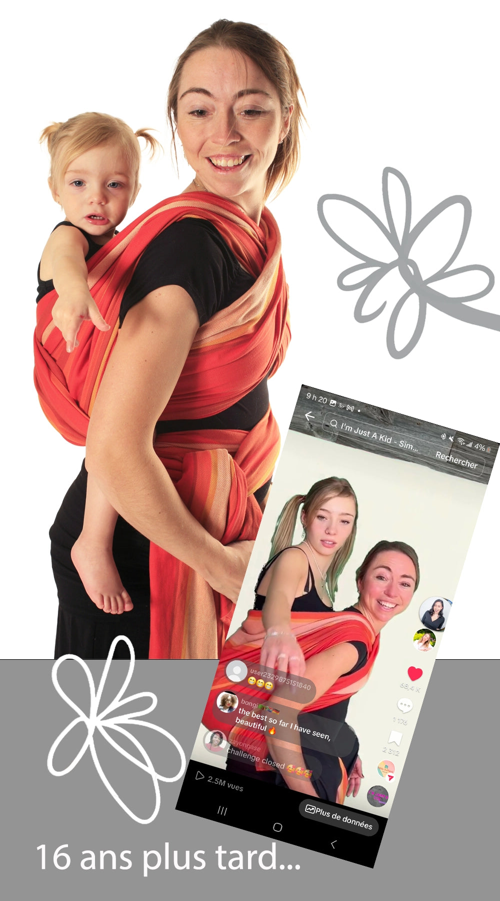 Florence était un vrai bébé à bras, pleurant sans cesse sauf lorsqu’elle était blottie contre sa mère, Christine. Ce fut un contraste frappant avec son premier enfant, qui ne pleurait presque jamais. Christine, hyperactive de nature, trouvait cela extrêmement stressant de devoir tenir un bébé en permanence, sans pouvoir rien faire de ses mains. Elle se sentait dépassée et désorganisée. Mais tout a changé lorsqu'elle a découvert une écharpe qui permettait à Florence de dormir paisiblement tout en lui redonnant sa liberté de mouvement. Cette expérience a tellement transformé sa vie qu'elle a ressenti le besoin de partager cette découverte avec d'autres parents, et ainsi est née Chimparoo. Et non! Florence n'a plus besoin d'être portée en écharpe. C'est une belle jeune fille épanouie, empathique et qui aime prendre soin des gens :)