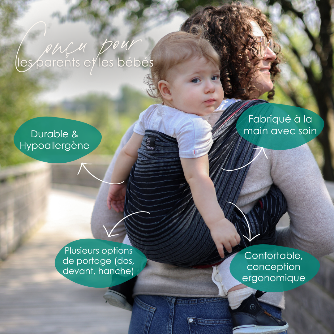Concernant la sécurité de nos porte-bébés, ils ont tous passé des tests en laboratoire et sont certifiés selon les standards les plus élevés de l'industrie. De plus, ils sont conçus par une ergothérapeute qui connaît parfaitement le développement des bébés à chaque étape. Toujours pas convaincu ? Lisez les nombreux témoignages de nos clients satisfaits !