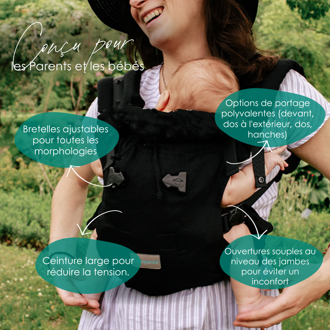 Concernant la sécurité de nos porte-bébés, ils ont tous passé des tests en laboratoire et sont certifiés selon les standards les plus élevés de l'industrie. De plus, ils sont conçus par une ergothérapeute qui connaît parfaitement le développement des bébés à chaque étape. Toujours pas convaincu ? Lisez les nombreux témoignages de nos clients satisfaits !